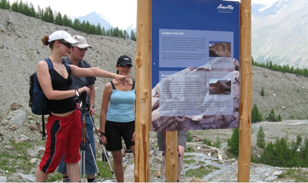 In the glacier foreland of the Fee glacierThis trail through a glaciated landscape offers hikers wonderful insights into nature. The section between the Felskinn cable car and the Restaurant Gletschergrotte also has a number of scenic viewpoints that should not be missed.