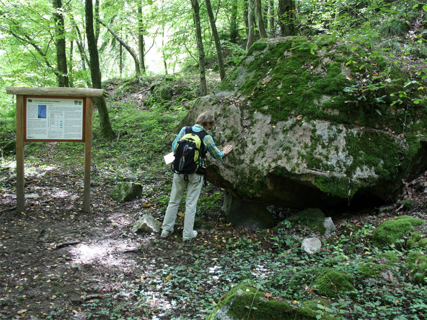 Ab Monthey Spital bis CollombeyEntre Monthey et Collombey les énormes blocs déposés par les glaciers sont les témoins de l’extension ancienne des glaciers et des débats passionnés des scientifiques autour des variations du climat. Huit panneaux relatent leur origine et leur protection.