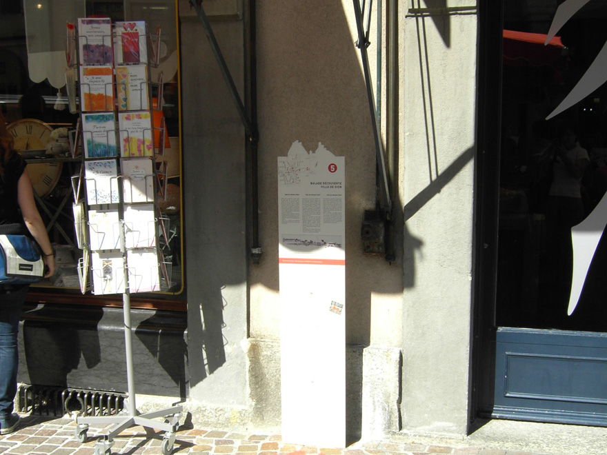 Durch das historische Zentrum von Sitten Dieser Stadtspaziergang durch das historische Zentrum von Sitten führt Sie während ein bis zwei Stunden zu den wichtigsten kulturellen Erbgüter der Stadt. Vierzehn Tafeln präsentieren Gebäude und Orte als Zeugen der 7'000 Jahre alten Kulturgeschichte.